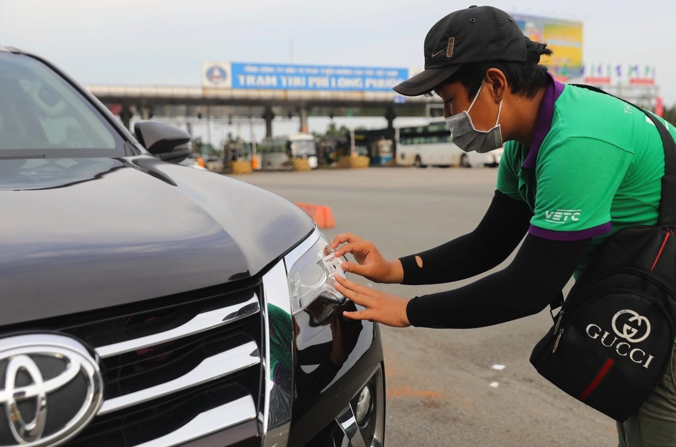 Dán thẻ thu phí không dừng ETC tại cao tốc TP HCM – Long Thành – Dầu Giây. Ảnh: Quỳnh Trần
