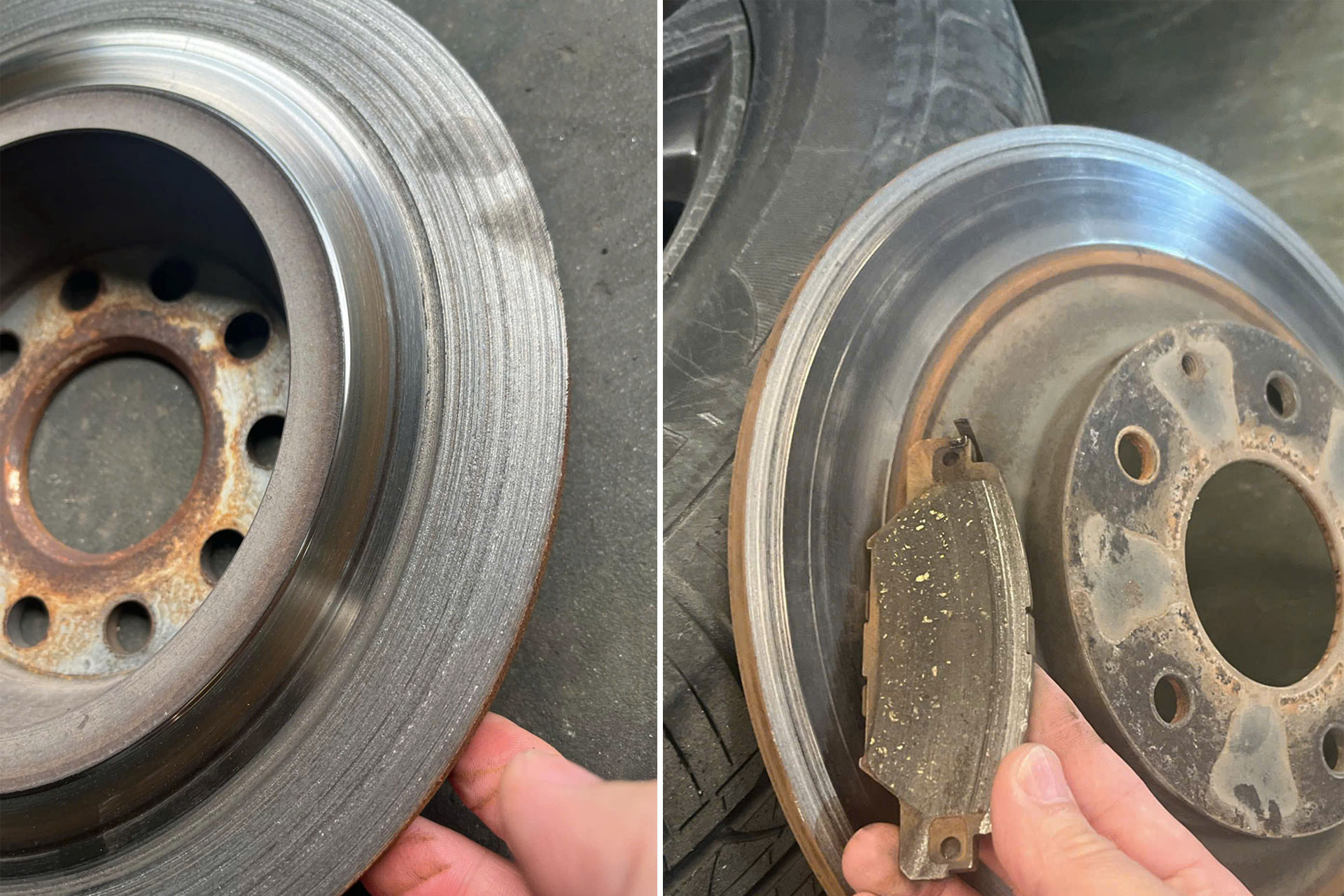 Má phanh mòn có thể làm hỏng cả đĩa phanh. Ảnh: Ngô Minh