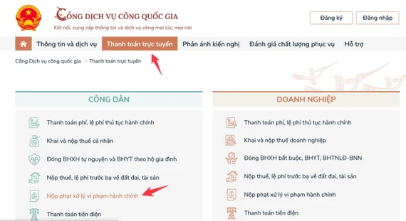 Đóng phạt vi phạm giao thông online thông qua cổng dịch vụ công quốc gia. Ảnh: MINH HOÀNG