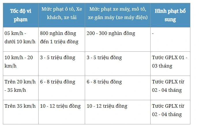 Theo quy định tại Nghị định 100 và Nghị định 123/2021/NĐ-CP, từ năm 2022, mức xử phạt vi phạm chạy quá tốc độ quy định cụ thể như sau: