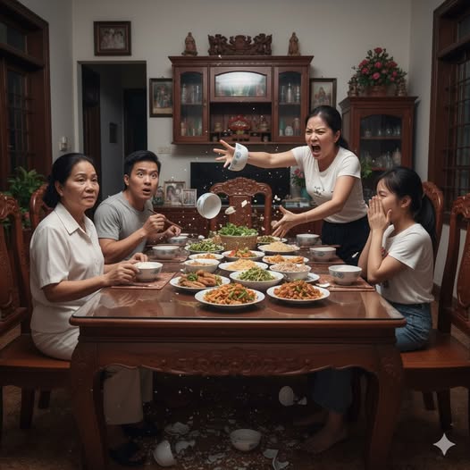 Tôi vừa dứt lời, mẹ chồng đặt mạnh đôi đũa xuống bàn, giọng the thé: