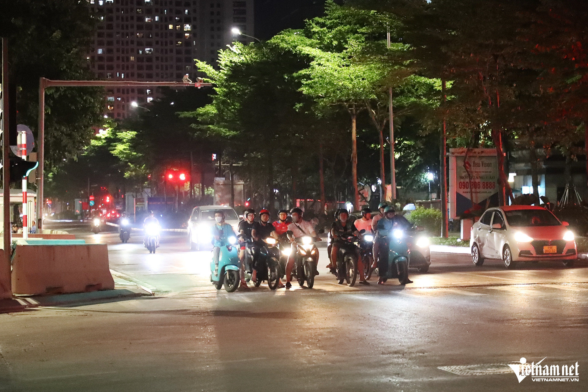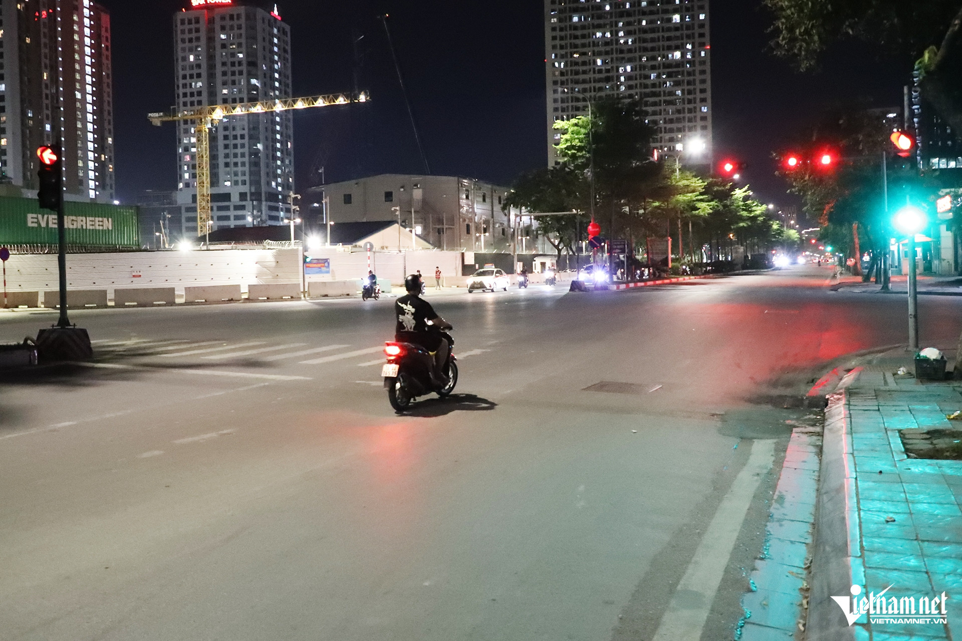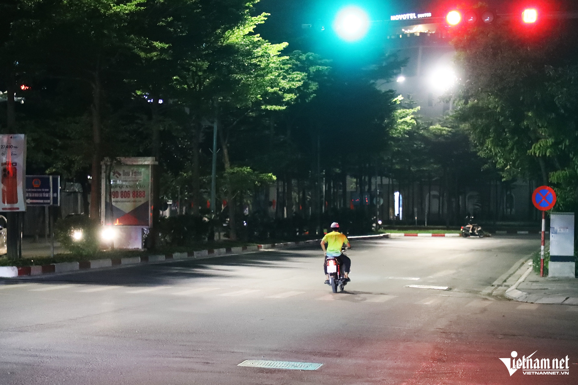 Đáng chú ý, càng về khuya, phương tiện lưu thông ít, đường vắng, chỉ có 1 người đi xe máy trên một chiều đường nhưng người tham gia giao thông vẫn chấp hành dừng đèn đỏ.